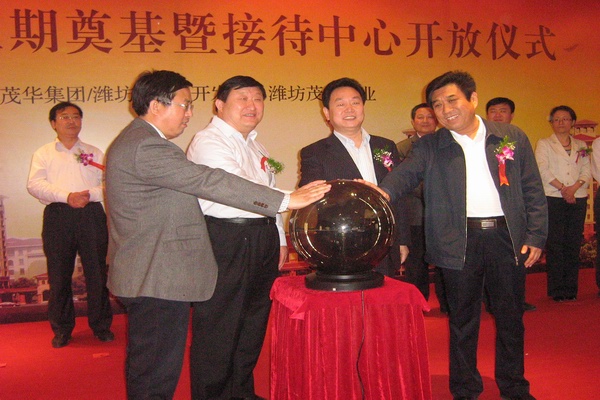 茂华爱琴海项目于2011年5月14日,举行盛大的二期奠基暨接待中心开放仪式。潍坊市政协副主席刘维国、潍坊市国土局局长刘树亮、奎文区的有关领导出席仪式,潍坊市住房和城乡建设局副局长杜天斌发表讲话,对茂华•爱琴海项目的建设给予高度评价,潍坊茂华置业有限公司总经理苏塞北致辞并介绍项目基本情况。开放仪式后,各位领导共同为茂华•爱琴海二期奠基,活动取得圆满成功。