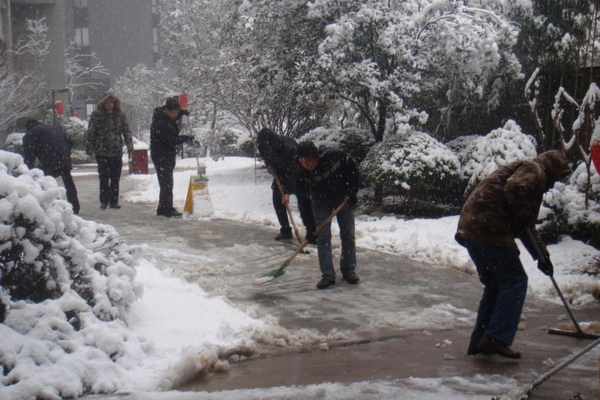 2011年1月18日至20日,受强冷空气南下影响,湖南长沙遭遇40年不遇的罕见暴雪天气,部分地区积雪厚度达到10厘米,市区大雪围城、车堵人困。茂华•国际湘小区人行道上堆上了厚厚一层雪,如果积雪不及时清除,将影响到业主出行安全,在湖南茂华物业刘岳辉总经理的带领下,全体物业员工冒着鹅毛大雪,不怕冷、不怕累,大家伙轮番上阵与风雪争夺地盘。长沙连续三天的大雪,茂华物业员工总共出动6次清扫,业主们深受感动,不仅纷纷表示感谢,还有一些业主也拿起铁锹与物业工作人员一起铲雪、清扫,大家相处和谐,一派其乐融融景象。
