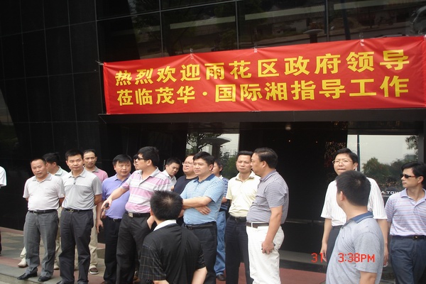 2010年8月19日下午,长沙市雨花区区委书记周杏武、区长邱继兴及相关职能部门、黎托乡党政领导一行20余人在湖南茂华副总经理张超的陪同下,视察茂华•国际湘项目。