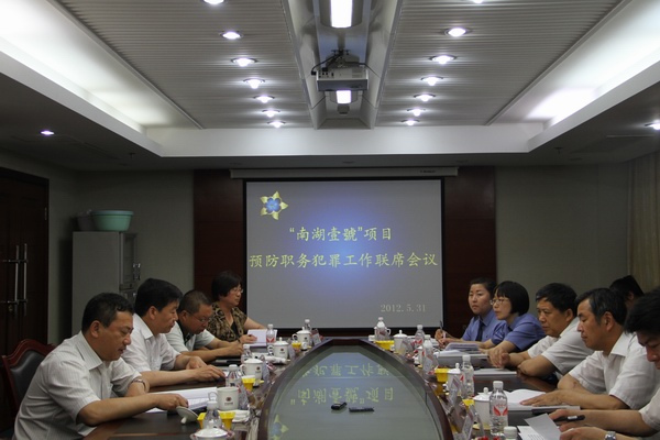 5月31日下午,“南湖壹號”项目预防职务犯罪工作联席会议在开滦宾馆四层会议室召开。开滦集团公司党委常委纪委书记李国,路南区人民检察院副检察长兼反贪局局长张玉峰,开滦集团公司纪委副书记刘士奇同志等出席,开滦茂华董事长冯守忠主持会议,开滦茂华总经理赵春林代表发言。会议首先听取了“南湖壹號”项目建设单位、总包单位、监理单位在项目开发、施工、监理过程中预防职务犯罪的工作汇报。路南区人民检察院职务犯罪预防科副科长刘海鹰同志宣读并主持与“南湖壹號”项目建设单位、总包单位、监理单位共同签订了《“南湖壹號”工程预防职务犯罪实施方案》。